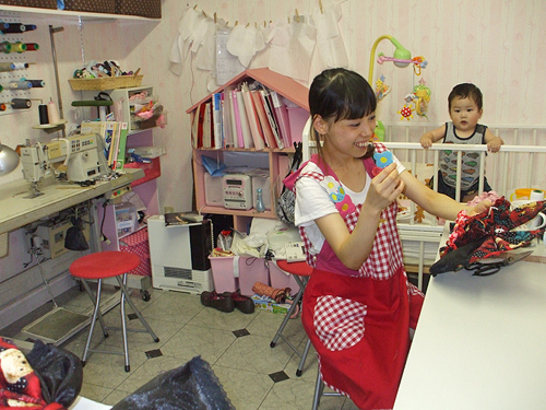 - 写真の女性は小さい頃から洋服が大好きで、服飾の専門学校を卒業して夢だった「女の子のおしゃれ着 Magic Flower」というお店をオープンさせました。生後十カ月の息子さんの面倒をみながら、大好きな仕事を生き生きとこなしていて、とても素敵だと思いました。私も自分のやりたいことを仕事にしようと思いました。