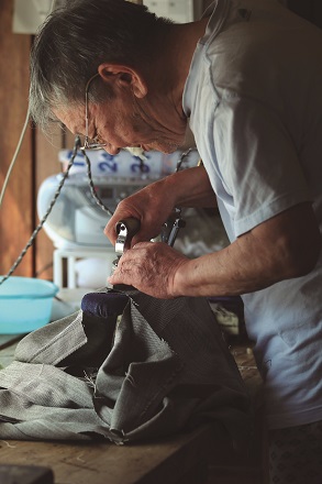 - 私の叔父さんは、服の仕立て屋さんです。最近では、服に穴が開いたり破けてしまったりサイズが合わなくなると、服を捨ててしまう人が多いと思います。叔父さんは持ち主が服を快適に着て過ごせるよう、心を込めて服を直しているそうです。70年も続けている服を作りかえる魔法を知ってもらいたくて、写真を撮りました。