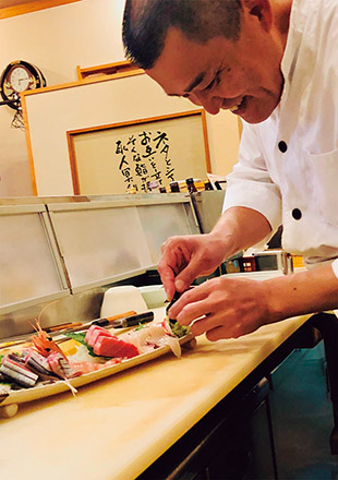 - この写真の方は、僕のあこがれでもある寿司屋の親方です。親方はどの場面、どの瞬間でもお寿司をにぎっている時は、常に心を温かくする笑顔です。そして、握っているお寿司一つ一つに心を込めることで、お客様との間に深い「絆」を築くことを大切にしています。そんな親方に僕は憧れています。僕も親方のような人を幸せにする笑顔あふれる大人になりたいという思いを込めて、この一枚を撮りました。