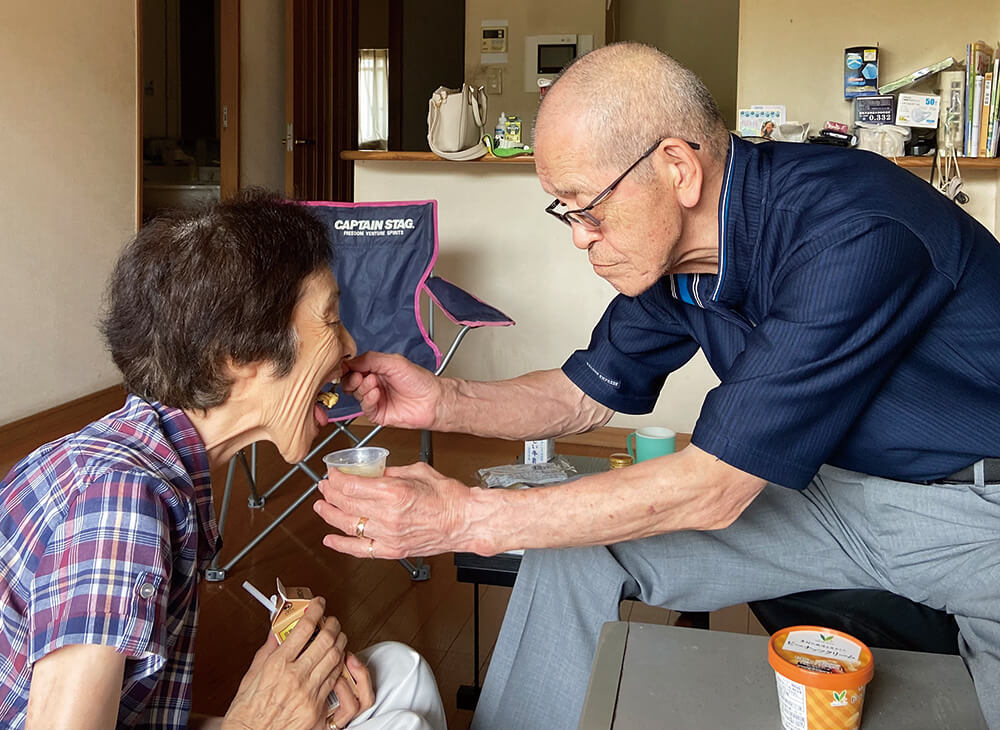 - 私のおじいちゃんは朝早くから夜遅くまで、糖尿病により目が見えない方の介護をしています。お昼ご飯の時間におじいちゃんが「次はバナナです」「次はプリンです」などと言ってから食べさせていました。あらかじめ何を食べるか伝えることで、目が見えなくても安心して食べることができると思いました。私のおじいちゃんは80歳です。おじいちゃんの働く姿を見て、働くのに年齢は関係ない、大切なのは相手を思いやる心なんだと感じました。